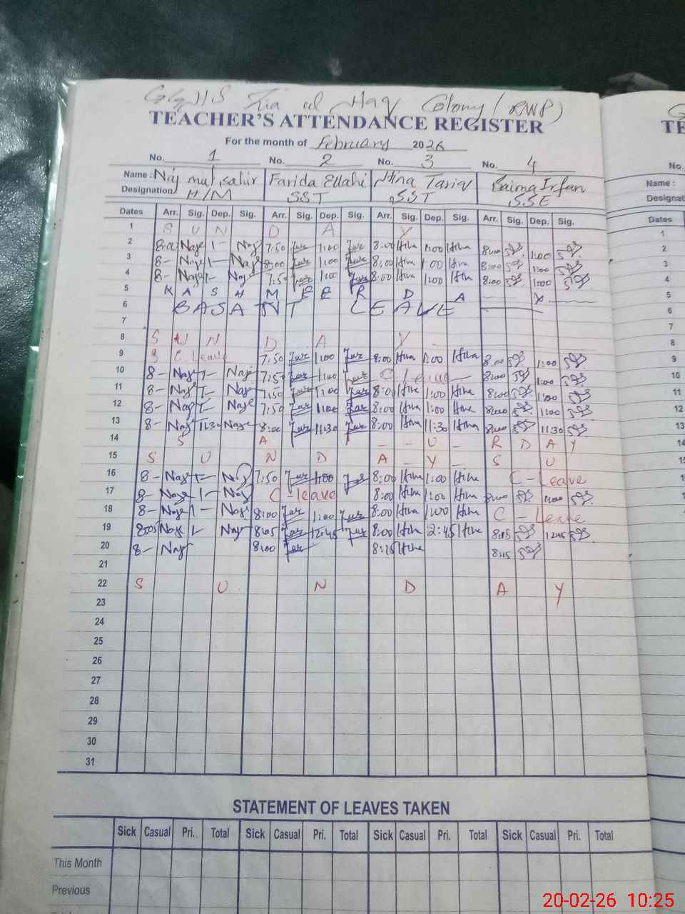 | Leave | Duty | Absent | Maternity | Medical | Ex- Pak |