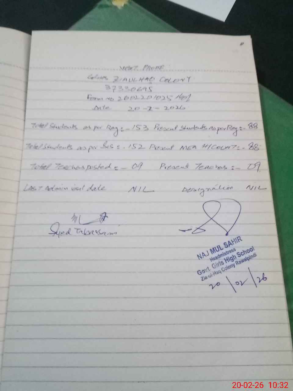 | EMIS Code: 37330695 | Name of School: GGHS ZIA-UL-HAQ COLONY RAWALPINDI | |||