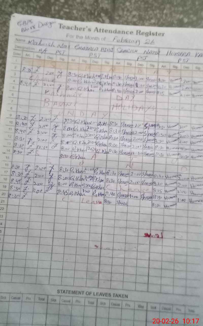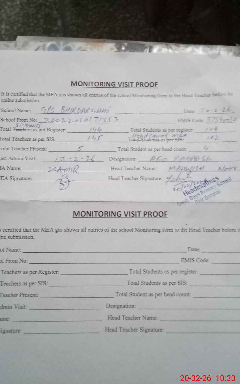 | EMIS Code: 37340030 | Name of School: GPS BHIRDAR GAHI | |||