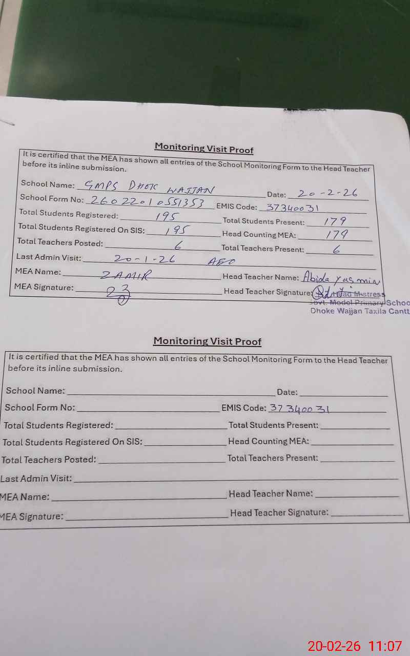 | EMIS Code: 37340031 | Name of School: GMPS DHOK WAJJAN | |||