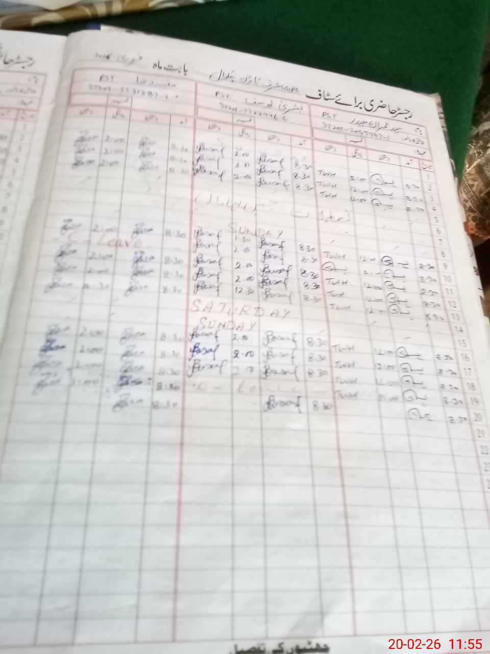 | CNIC | Full Name | Designation | R/C | Absence During Last Calender Month |