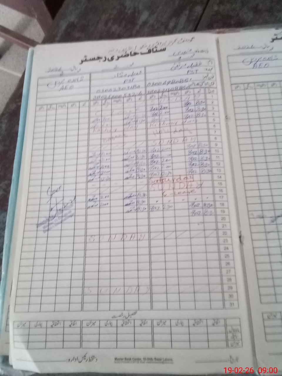 | CNIC | Full Name | Designation | R/C | Absence During Last Calender Month |