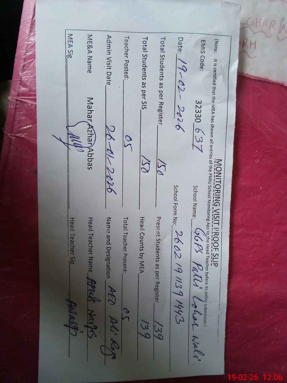 | EMIS Code: 32330637 | Name of School: GGPS PATTI LOHAR WALI | |||