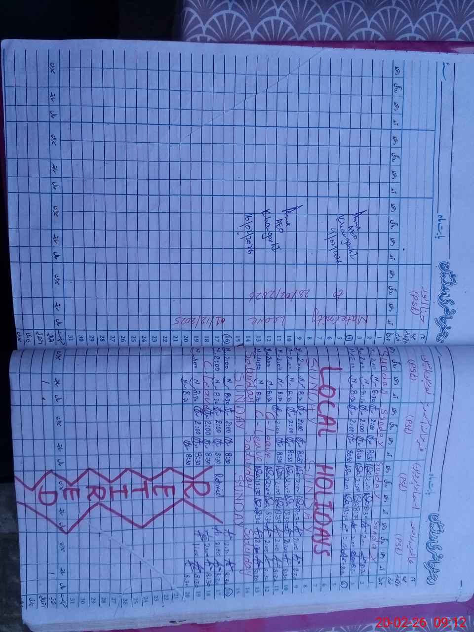 | CNIC | Full Name | Designation | R/C | Absence During Last Calender Month |
