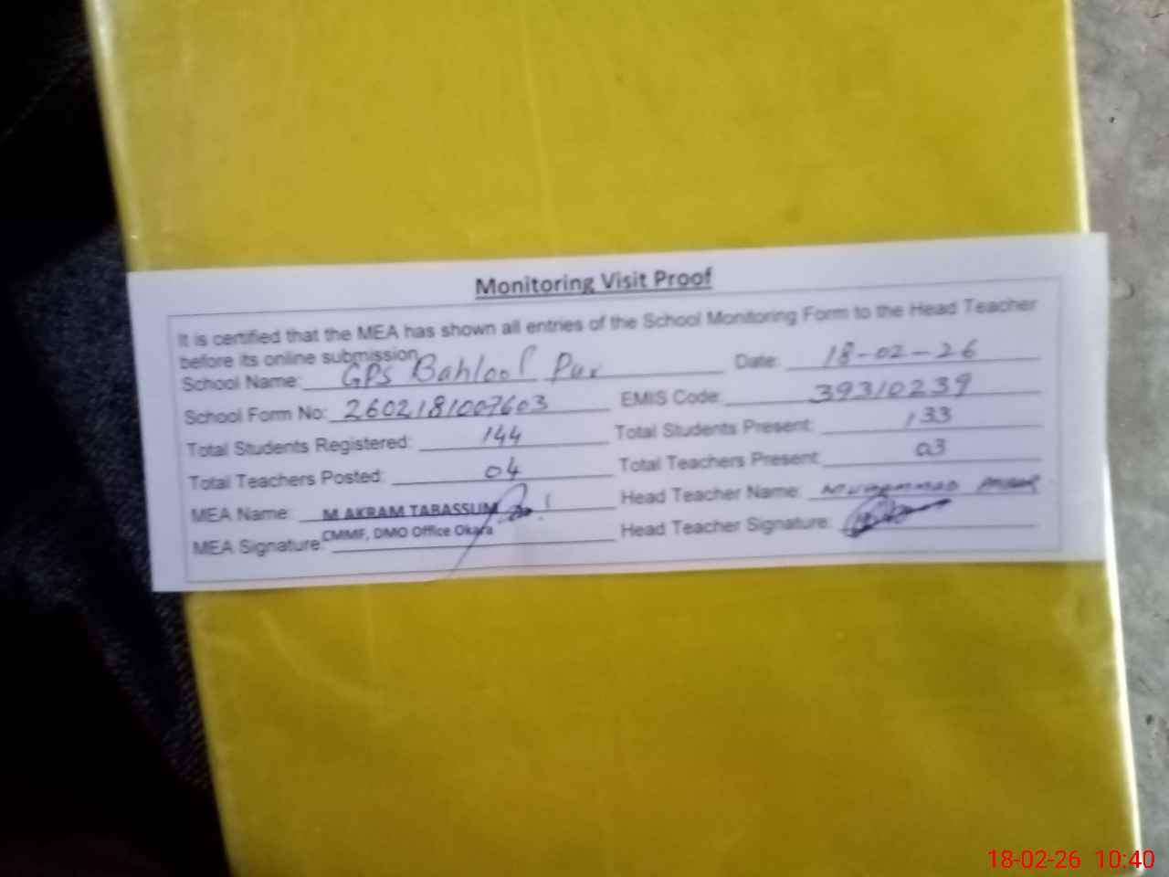 | EMIS Code: 39310239 | Name of School: GPS BHALOOL PUR | |||