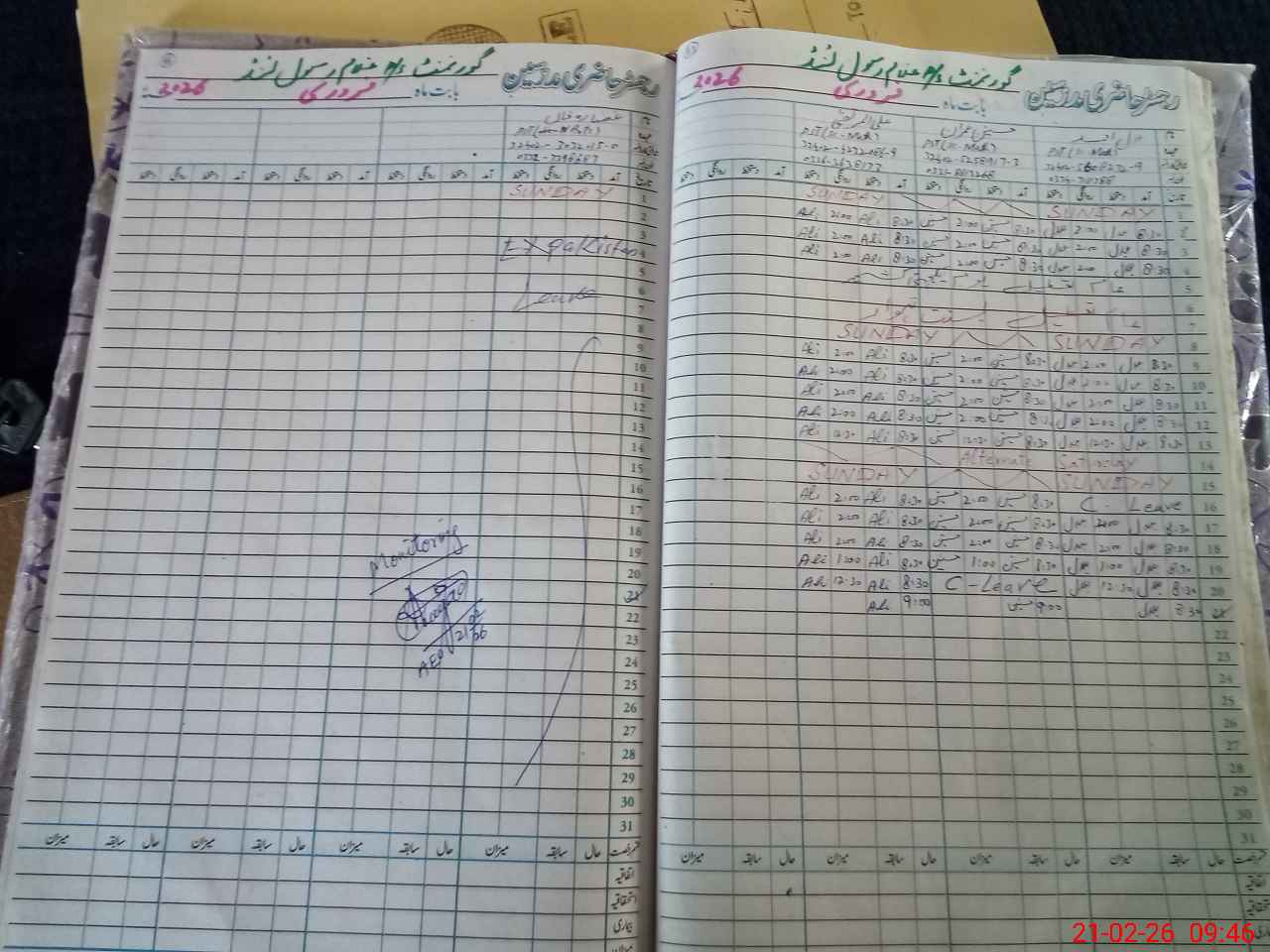 | CNIC | Full Name | Designation | R/C | Absence During Last Calender Month |