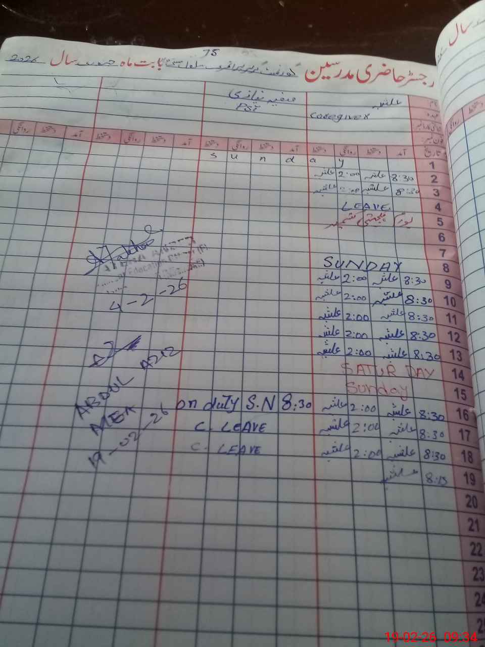 | Leave | Duty | Absent | Maternity | Medical | Ex- Pak |