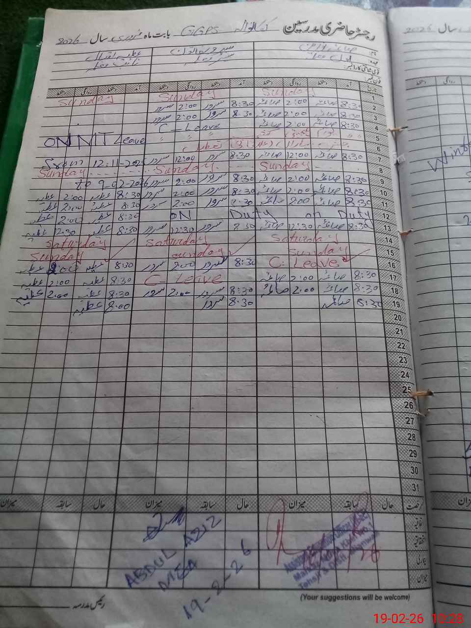 | Leave | Duty | Absent | Maternity | Medical | Ex- Pak |