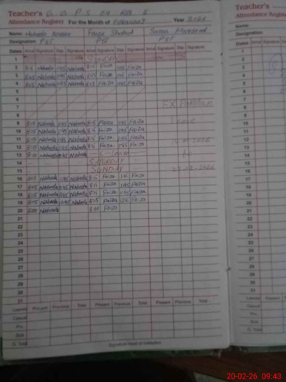 | Leave | Duty | Absent | Maternity | Medical | Ex- Pak |