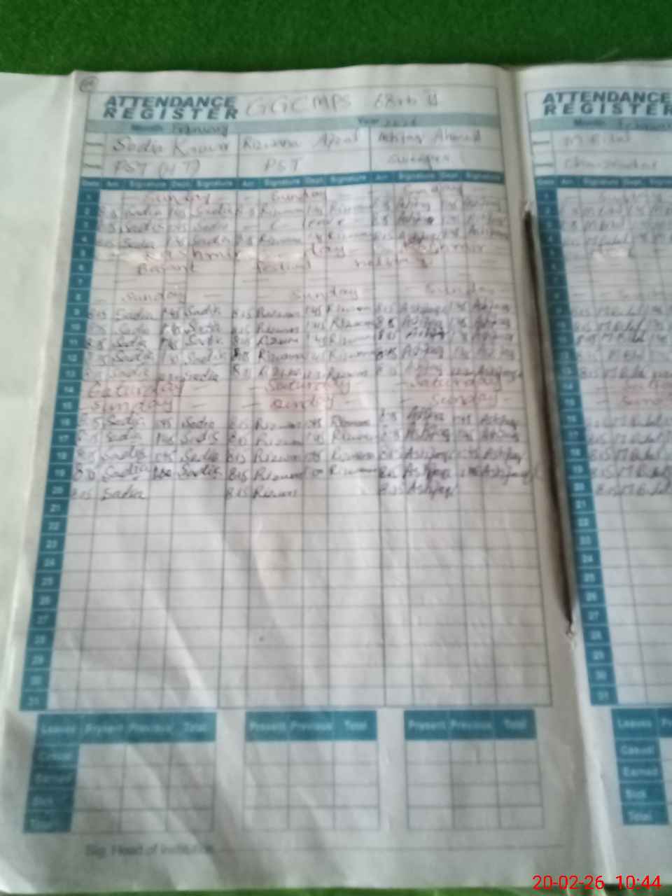 | Leave | Duty | Absent | Maternity | Medical | Ex- Pak |