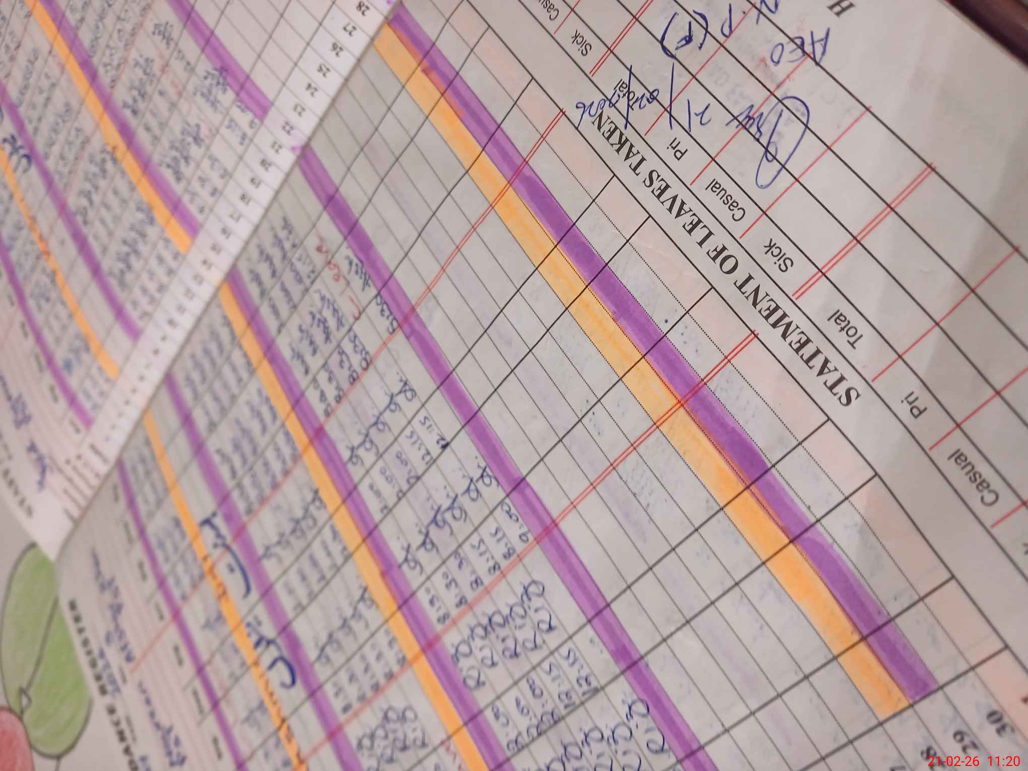 | CNIC | Full Name | Designation | R/C | Absence During Last Calender Month |