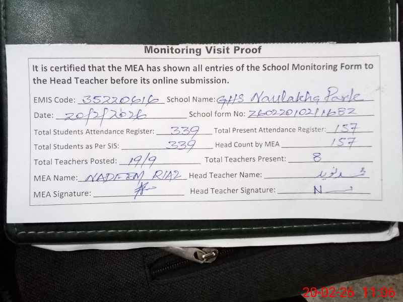 | EMIS Code: 35220616 | Name of School: GHS NAULAKHA PARK EX-MCL (Newly Upgraded) | |||