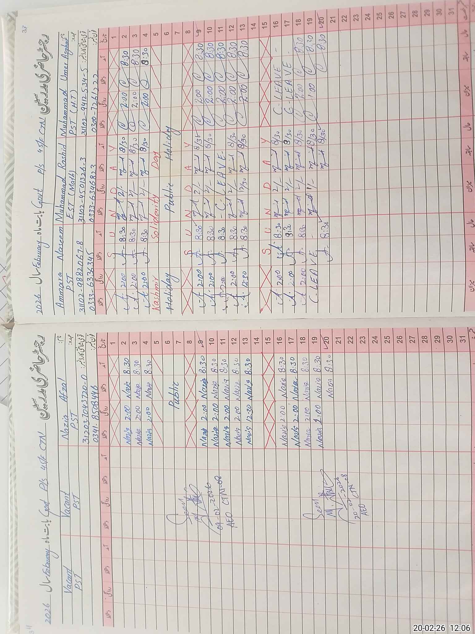 | Name: MUM**** AS**** Designation: (School Headmaster's/Headmistress's) PST Phone/Cell Number: 03**** |