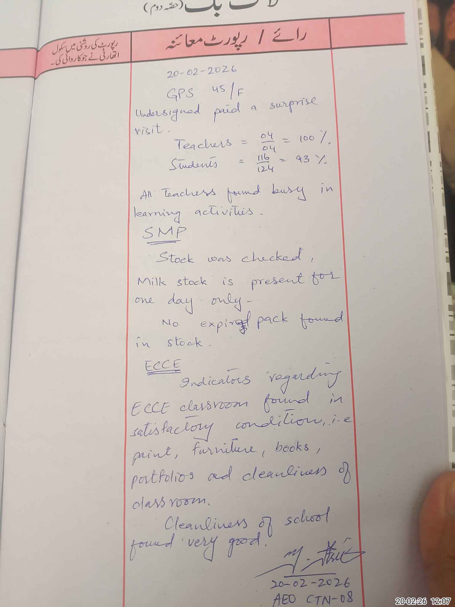 | Attendance Register | Head Teacher | MEA with School | Visit Proof |