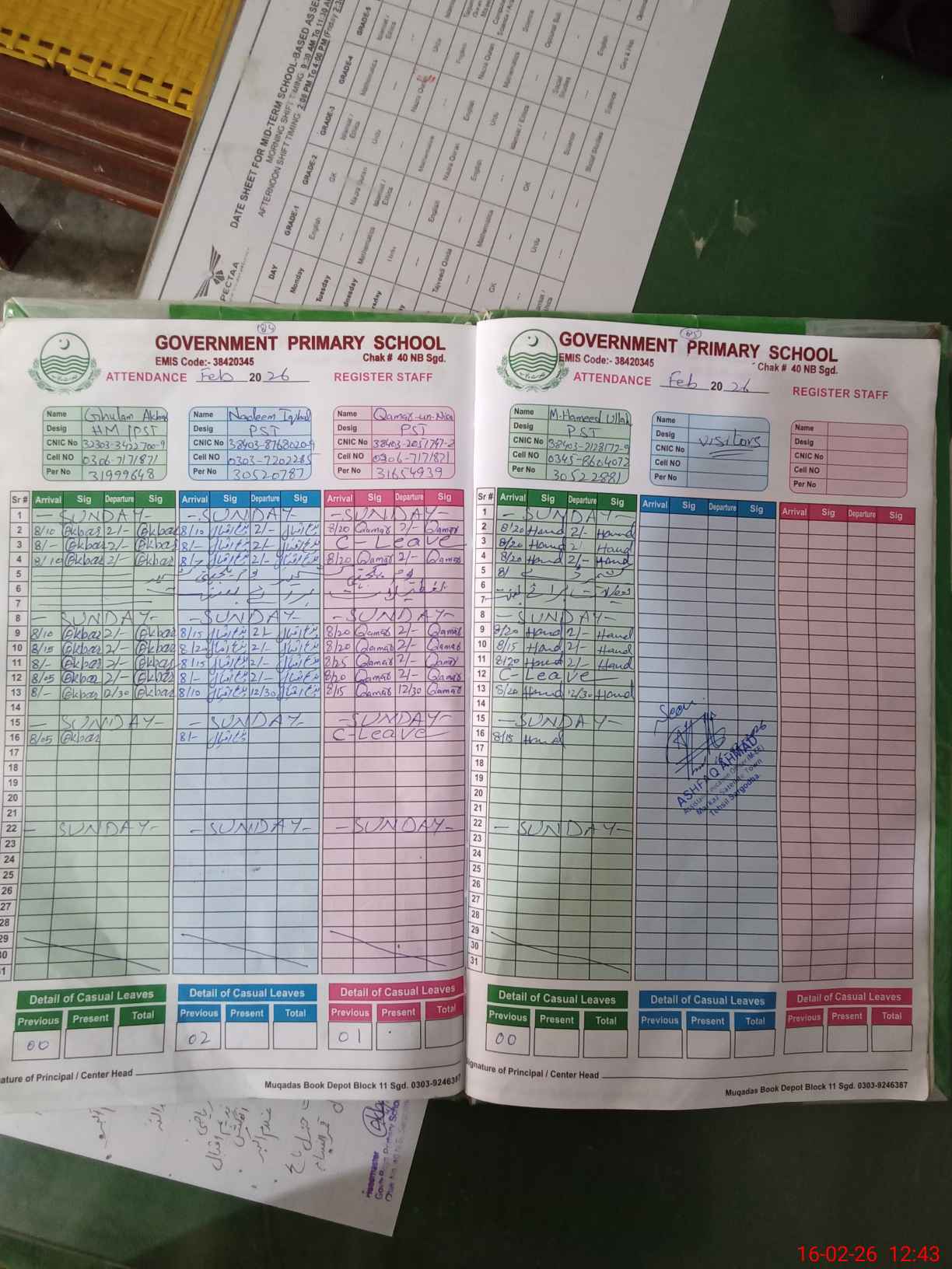 | Name: GH**** AK**** Designation: (School Headmaster's/Headmistress's) PST Phone/Cell Number: 03**** |