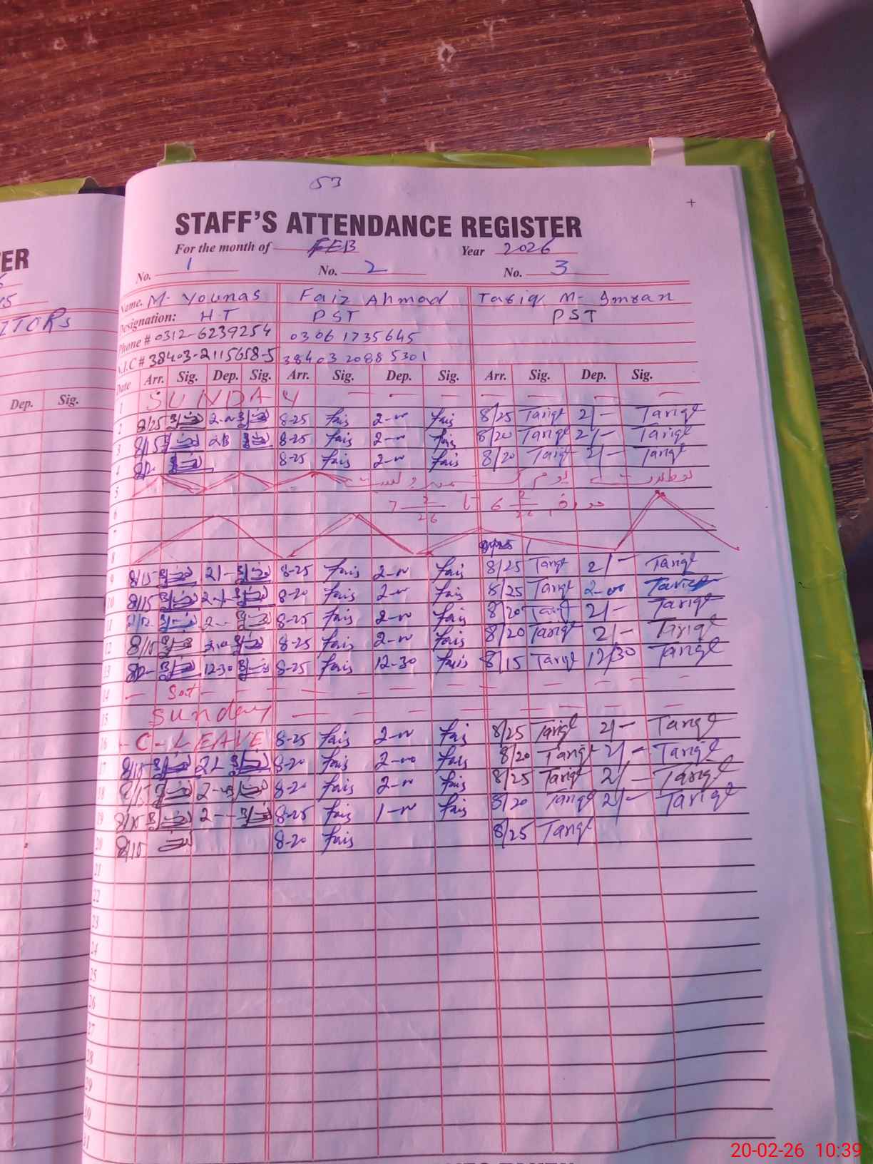 | CNIC | Full Name | Designation | R/C | Absence during last cal. month |