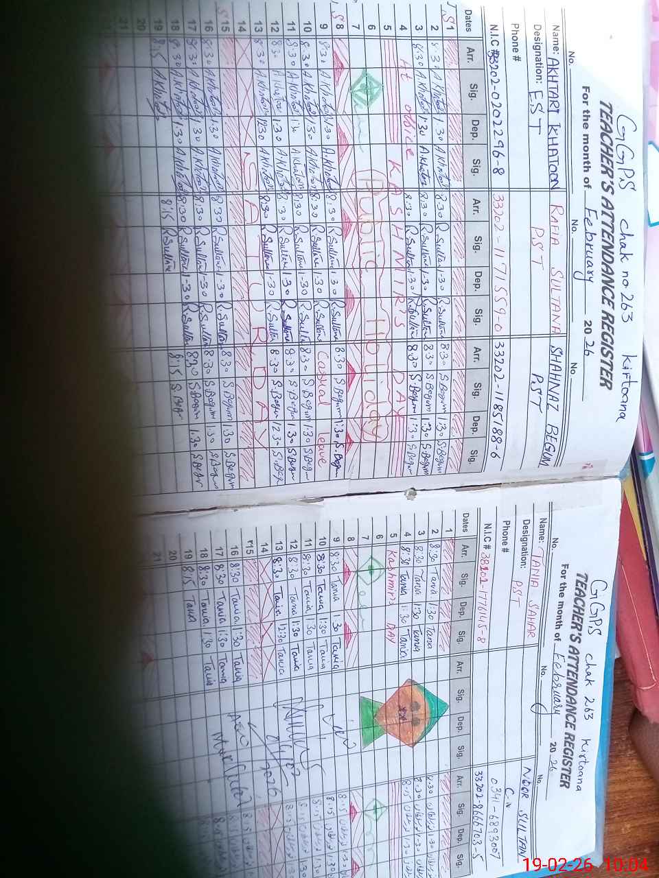 | CNIC | Full Name | Designation | R/C | Absence During Last Calender Month |