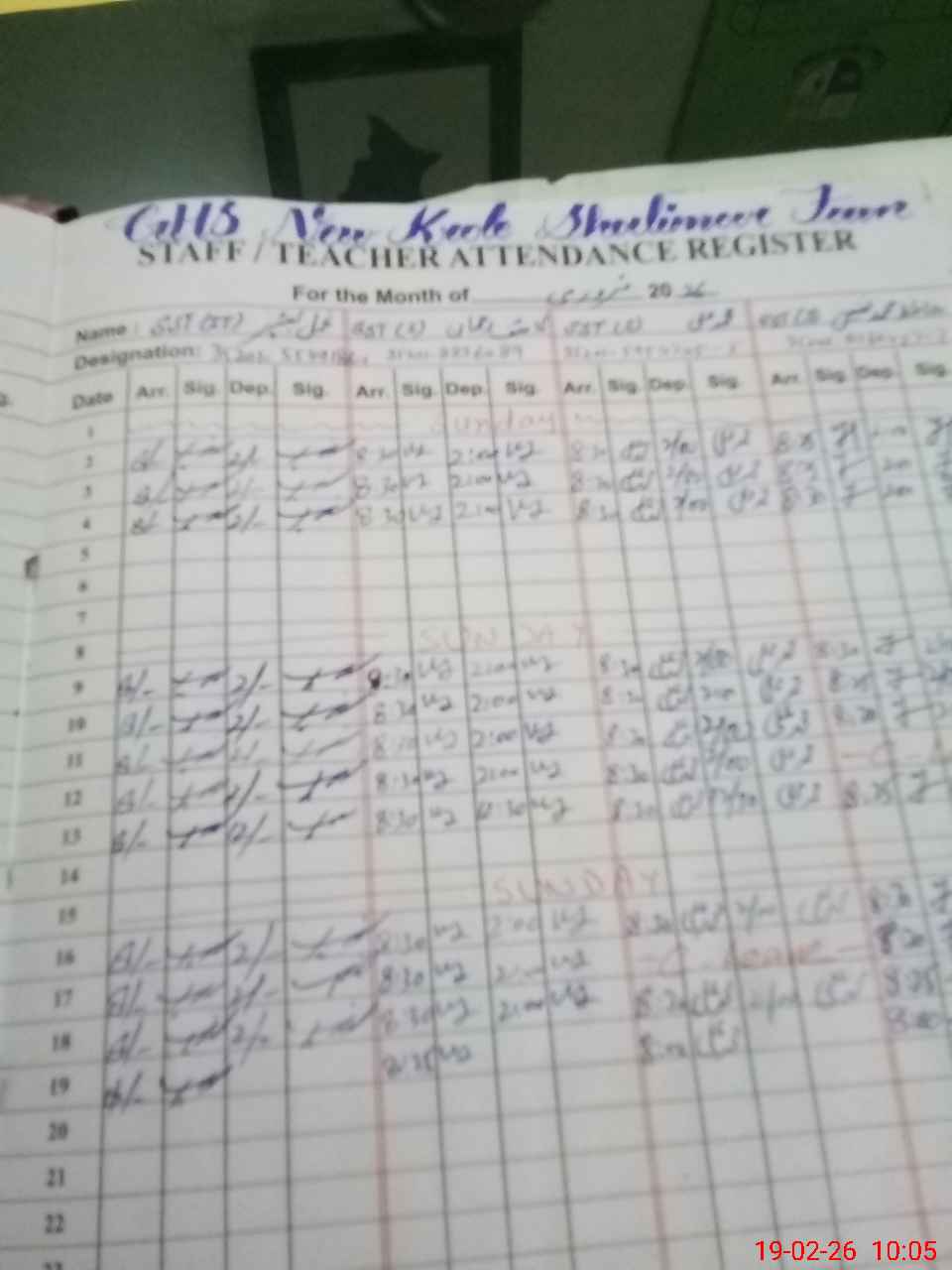 | CNIC | Full Name | Designation | R/C | Absence During Last Calender Month |