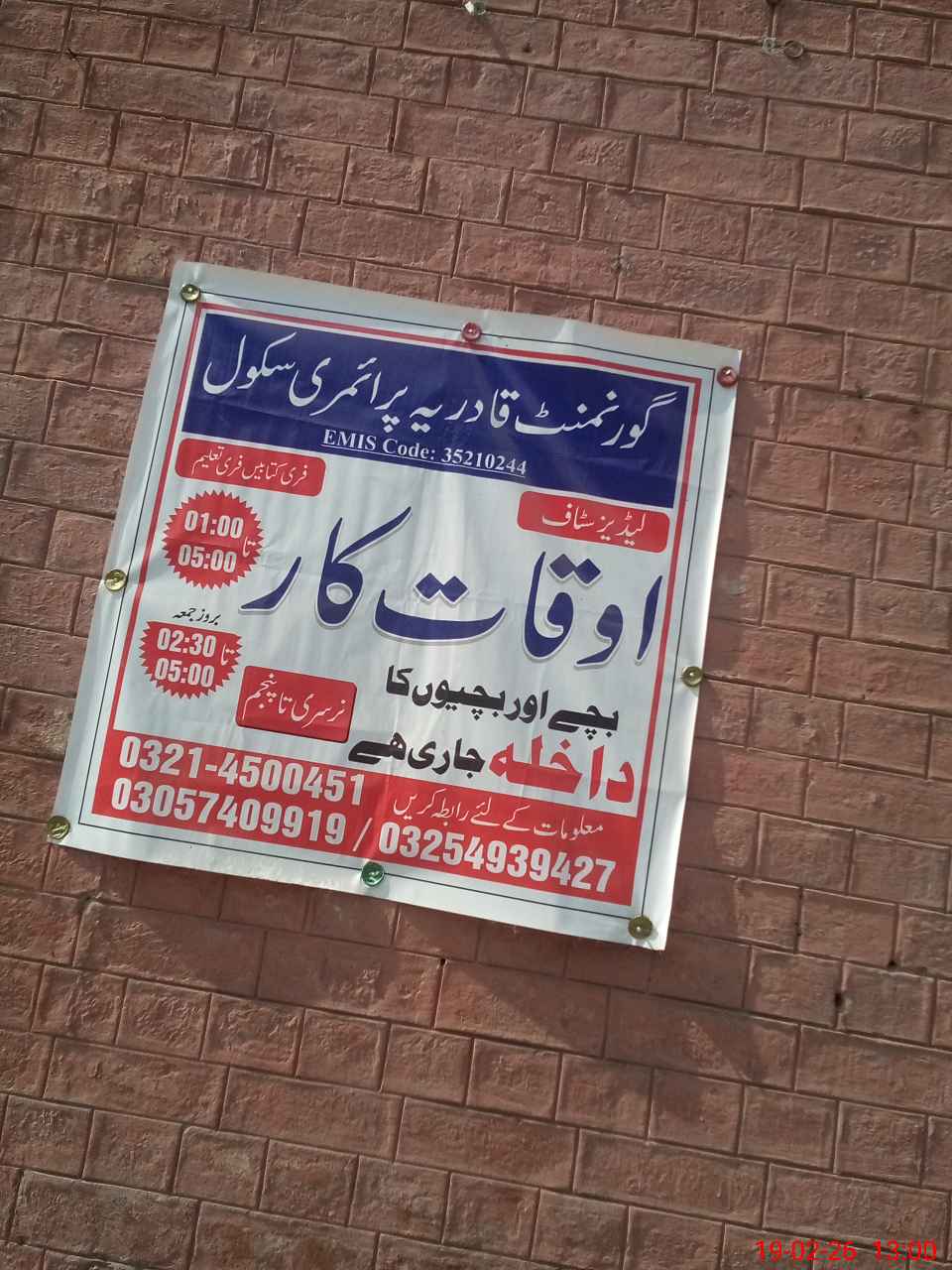 | EMIS Code: 35210244 | Name of School: GPS QADRIA SHALIMAR TOWN | |||