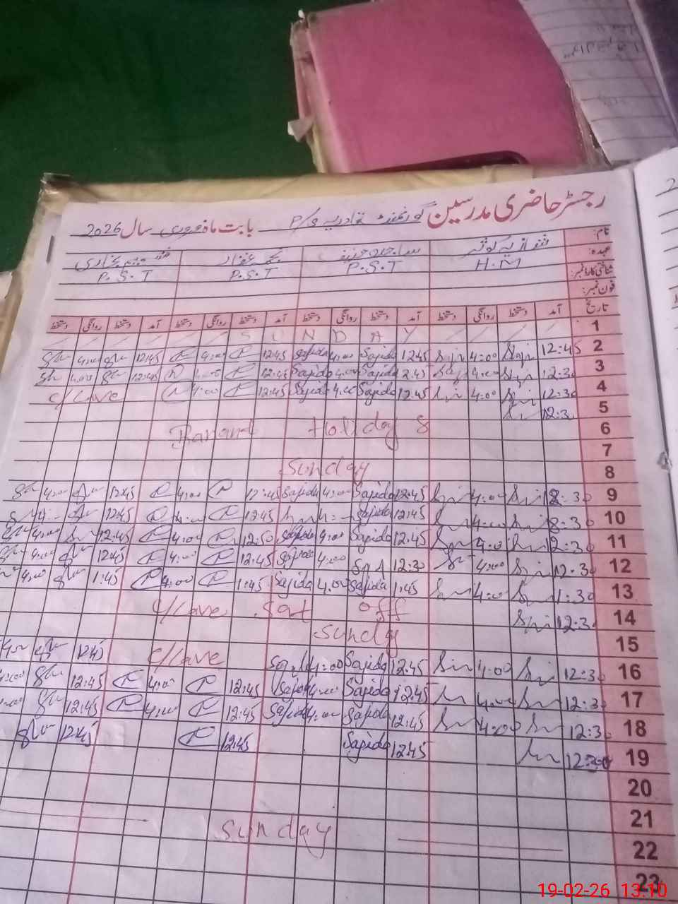 | 34**** | Ta**** Iq**** | PST Arts | Regular | 0 | 0 | 0 | 0 | 0 | 0 | 0 | 0 | 0 | Absent (Un-Authorized) |