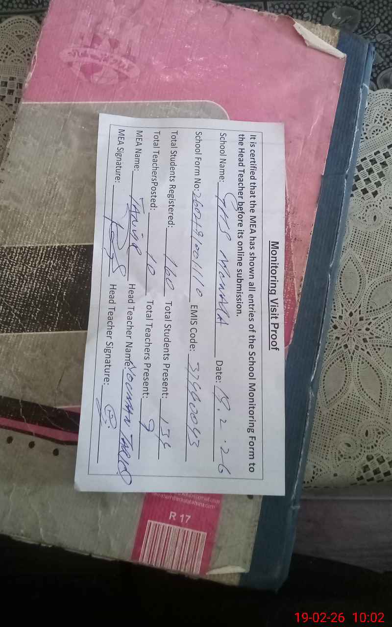 | Certified that this School was Inspected by the Undersigned MEA/DMO Today and the Information Stated Above is as Per Record. | |||||