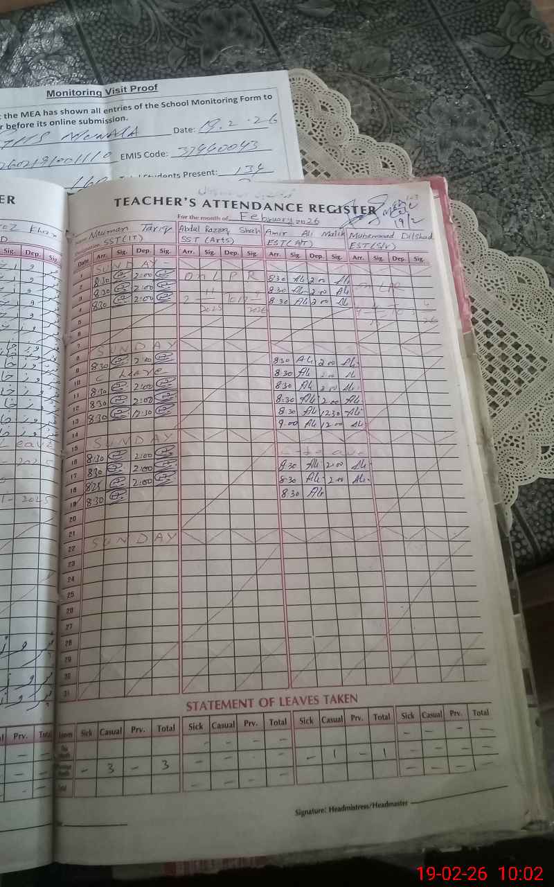 | Attendance Register | Head Teacher | MEA with School | Visit Proof |