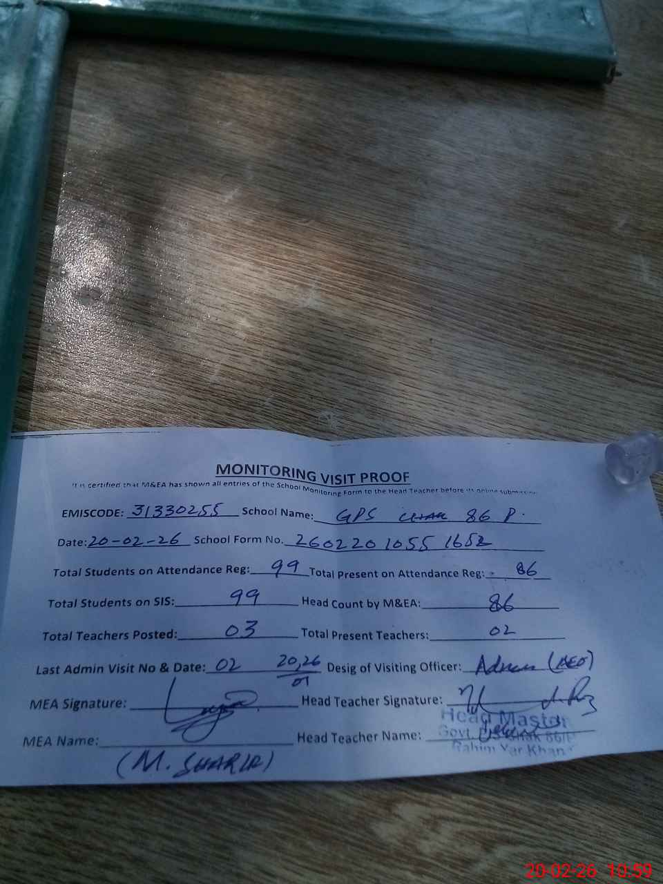 | EMIS Code: 31330255 | Name of School: GPS CHAK 86/P | |||