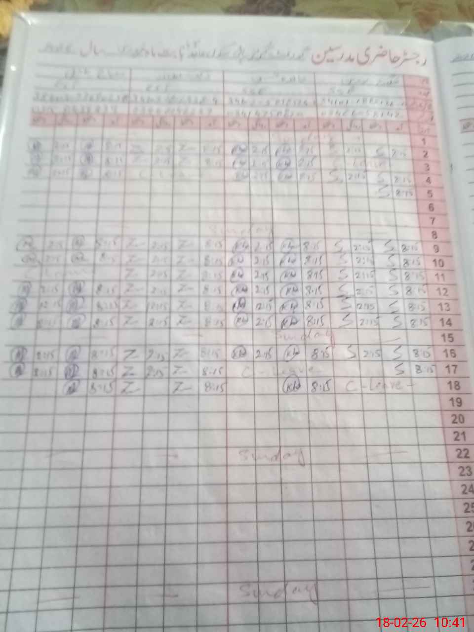 | CNIC | Full Name | Designation | R/C | Absence During Last Calender Month |