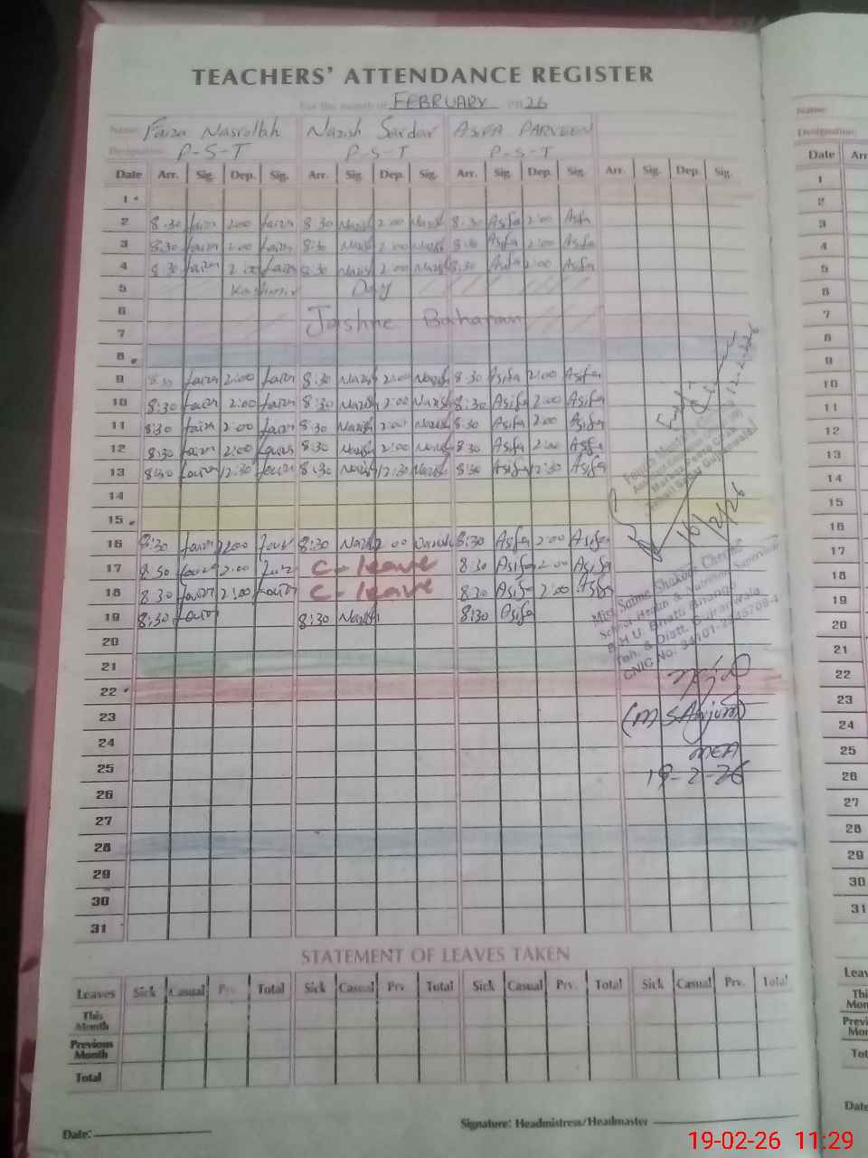 | Name: FA**** NA**** Designation: (School Headmaster's/Headmistress's) PST Phone/Cell Number: 03**** |