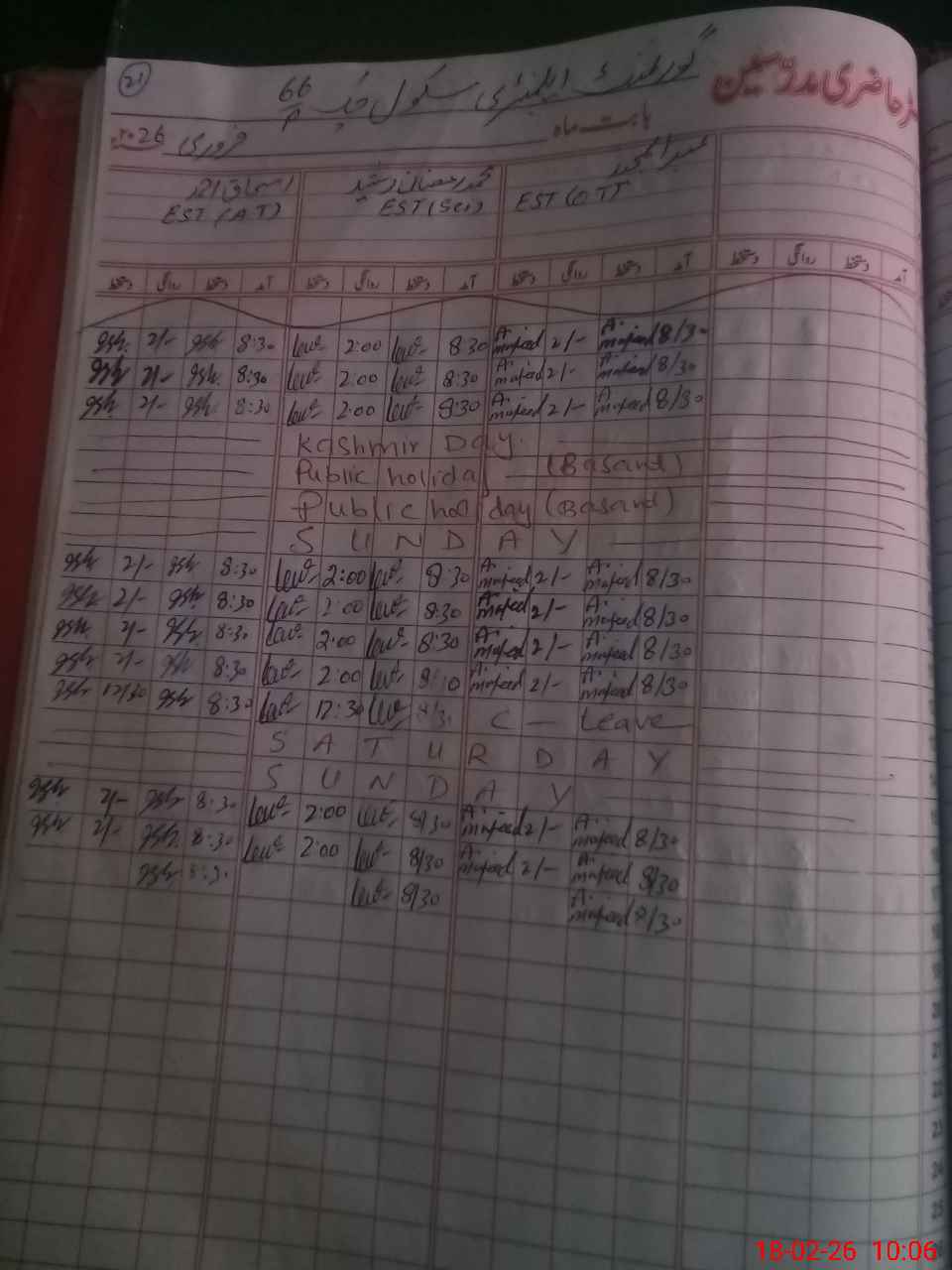 | Monitoring Date: 18-02-2026 | Start Time: 18-02-2026 09:43 AM | End Time: 18-02-2026 10:27 AM | Name of MEA: Mu**** As**** Sh**** | |