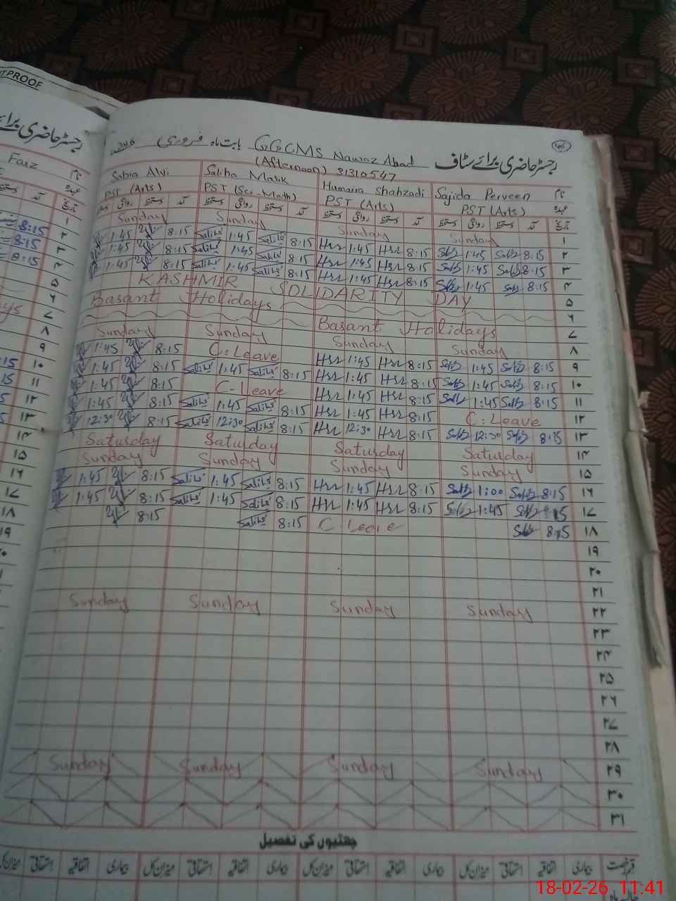 | Leave | Duty | Absent | Maternity | Medical | Ex- Pak |