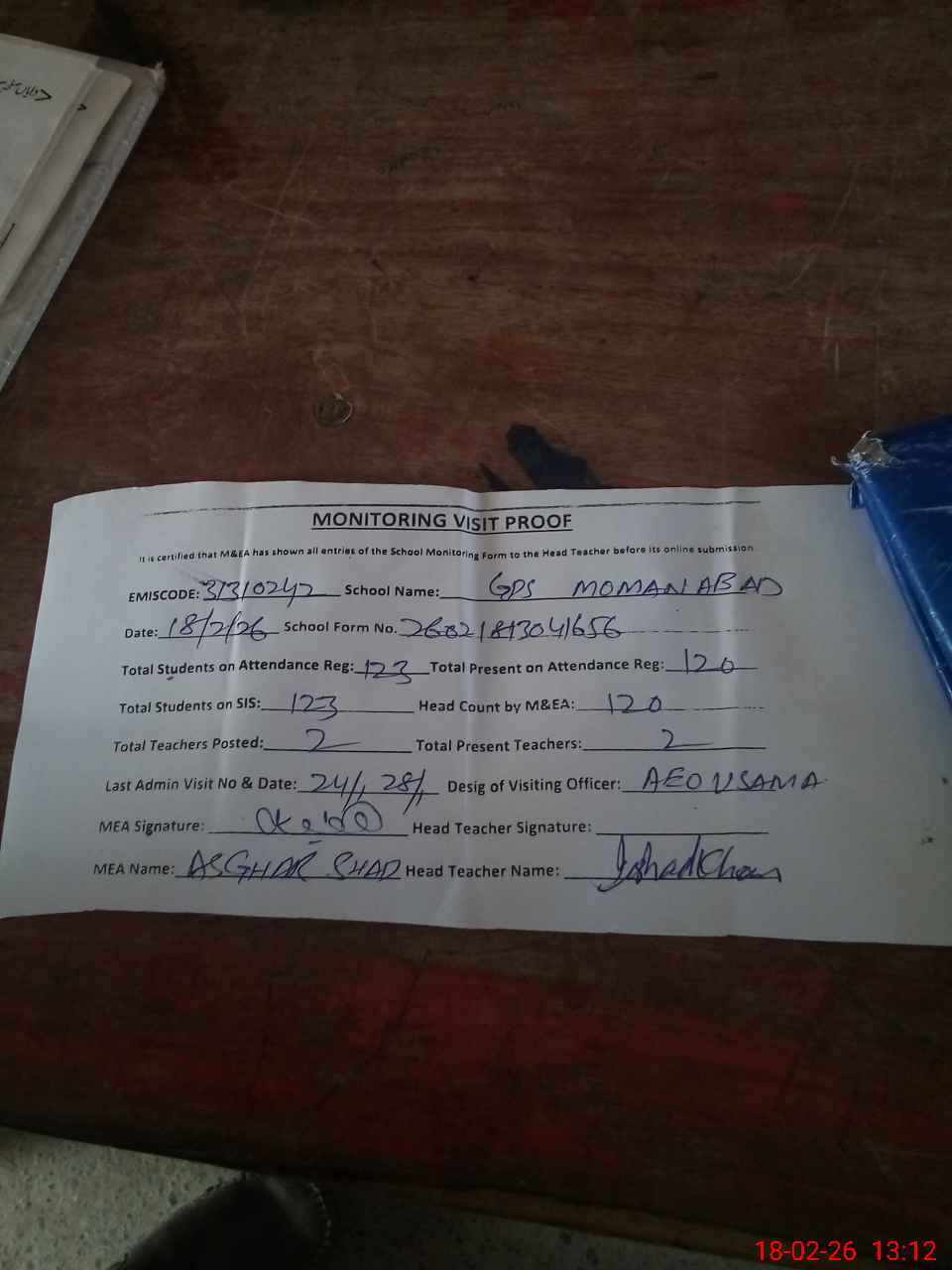 | EMIS Code: 31310242 | Name of School: GPS MOMAN ABAD | |||