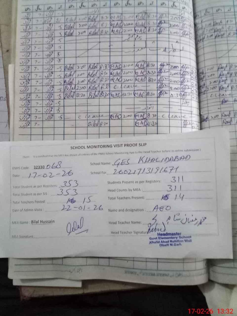 | EMIS Code: 32330068 | Name of School: GES KHALID ABAD | |||