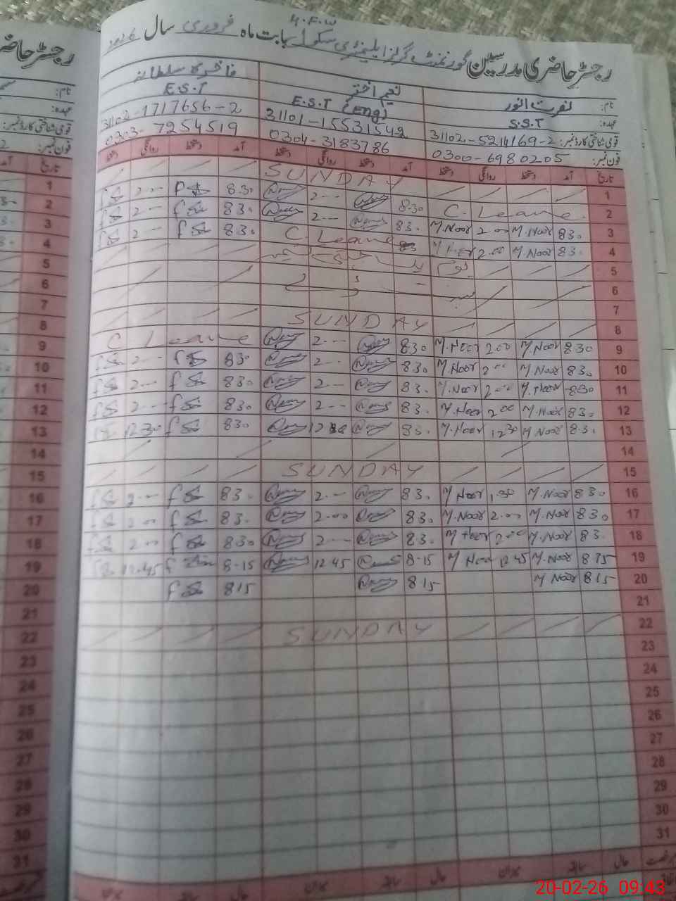 | Name: NU**** AN**** Designation: (School Headmaster's/Headmistress's) S.S.T.(RTS Phone/Cell Number: 03**** |