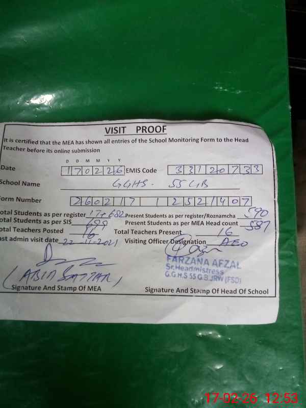 | EMIS Code: 33120733 | Name of School: GGHS CHAK 55 GB | |||