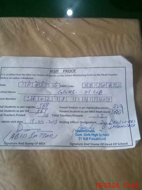 | EMIS Code: 33120632 | Name of School: GGHS CHAK NO. 21 GB | |||