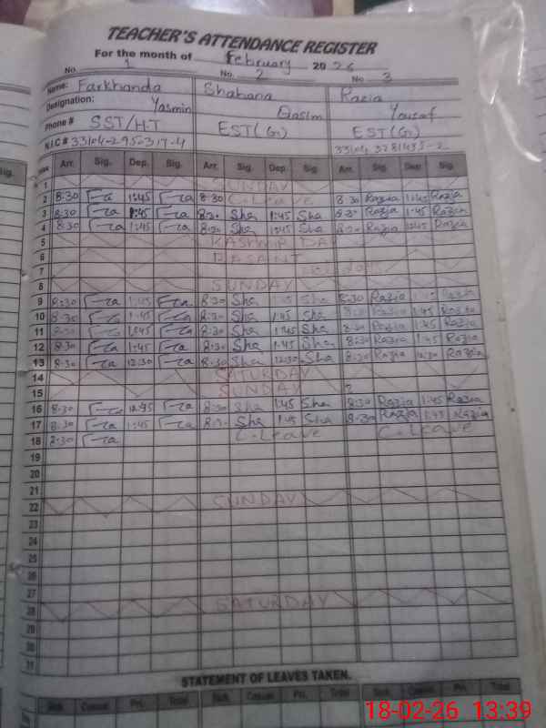 | Name: FA**** YA**** Designation: (School Headmaster's/Headmistress's) SST (GEN) Phone/Cell Number: 03**** |