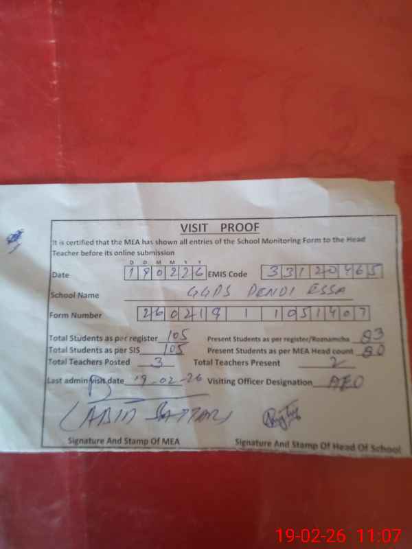 | Certified that this School was Inspected by the Undersigned MEA/DMO Today and the Information Stated Above is as Per Record. | |||||