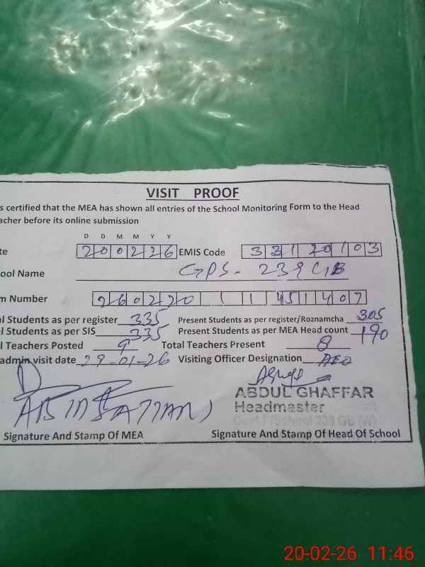 | EMIS Code: 33120103 | Name of School: GPS CHAK 239 GB WEST ANWAR ABAD | |||