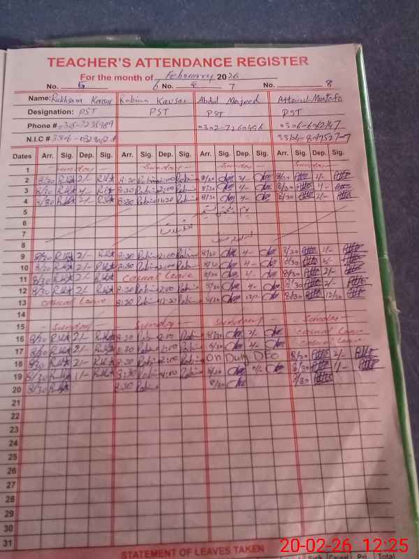 | Name: As**** Al**** Ab**** Designation: (School Headmaster's/Headmistress's) PST Phone/Cell Number: 03**** |