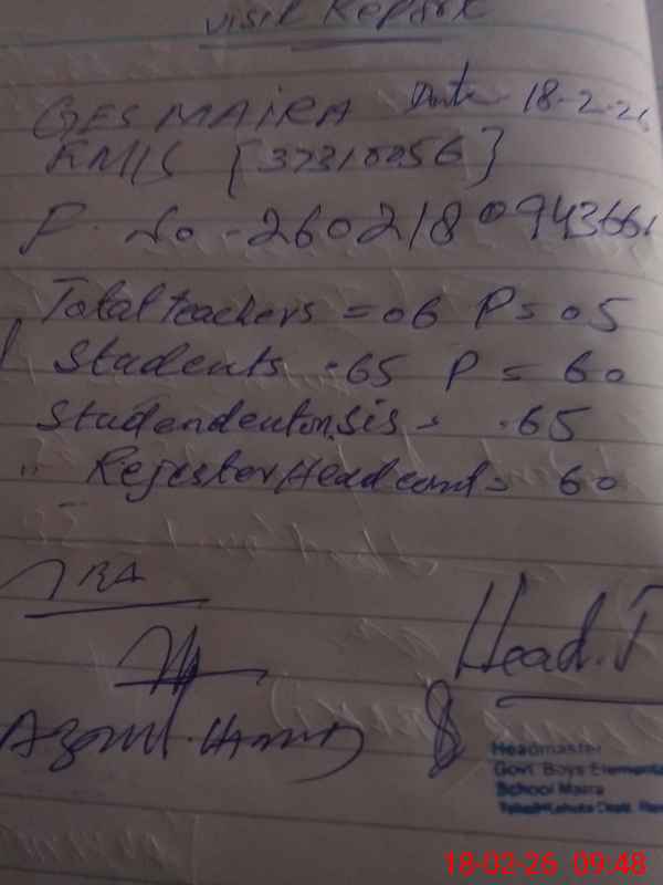 | Attendance Register | Head Teacher | MEA with School | Visit Proof |