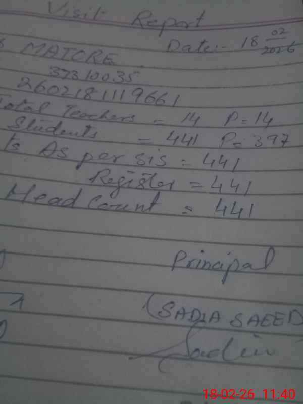 | Certified that this School was Inspected by the Undersigned MEA/DMO Today and the Information Stated Above is as Per Record. | |||||