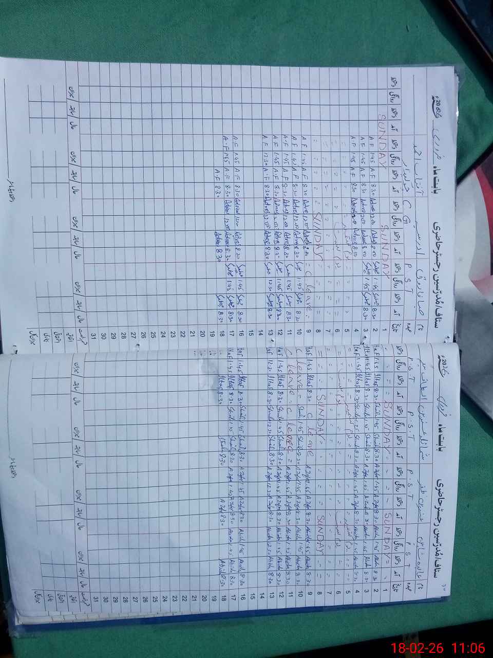 | CNIC | Full Name | Designation | R/C | Absence During Last Calender Month |