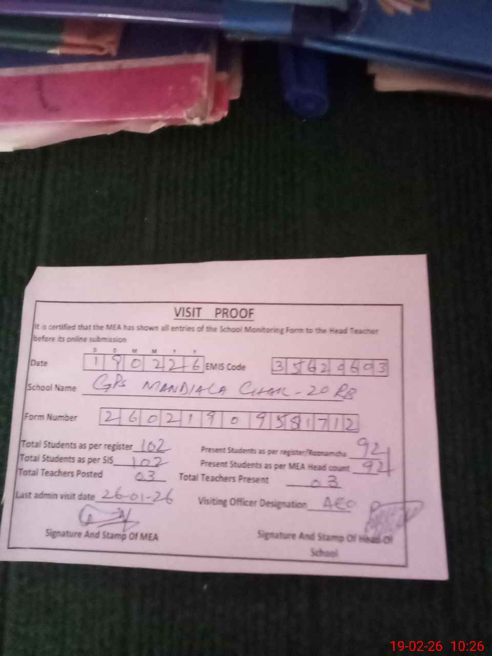 | EMIS Code: 35620603 | Name of School: GPS MANDIALA CHAK NO 20 RB | |||
