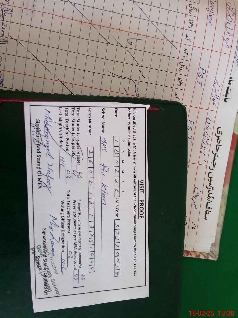 | Attendance Register | Head Teacher | MEA with School | Visit Proof |