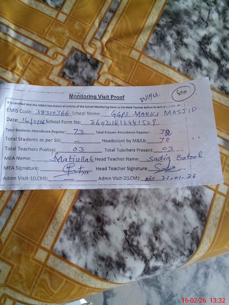 | EMIS Code: 38310366 | Name of School: GGPS MAKKI MASJID | |||