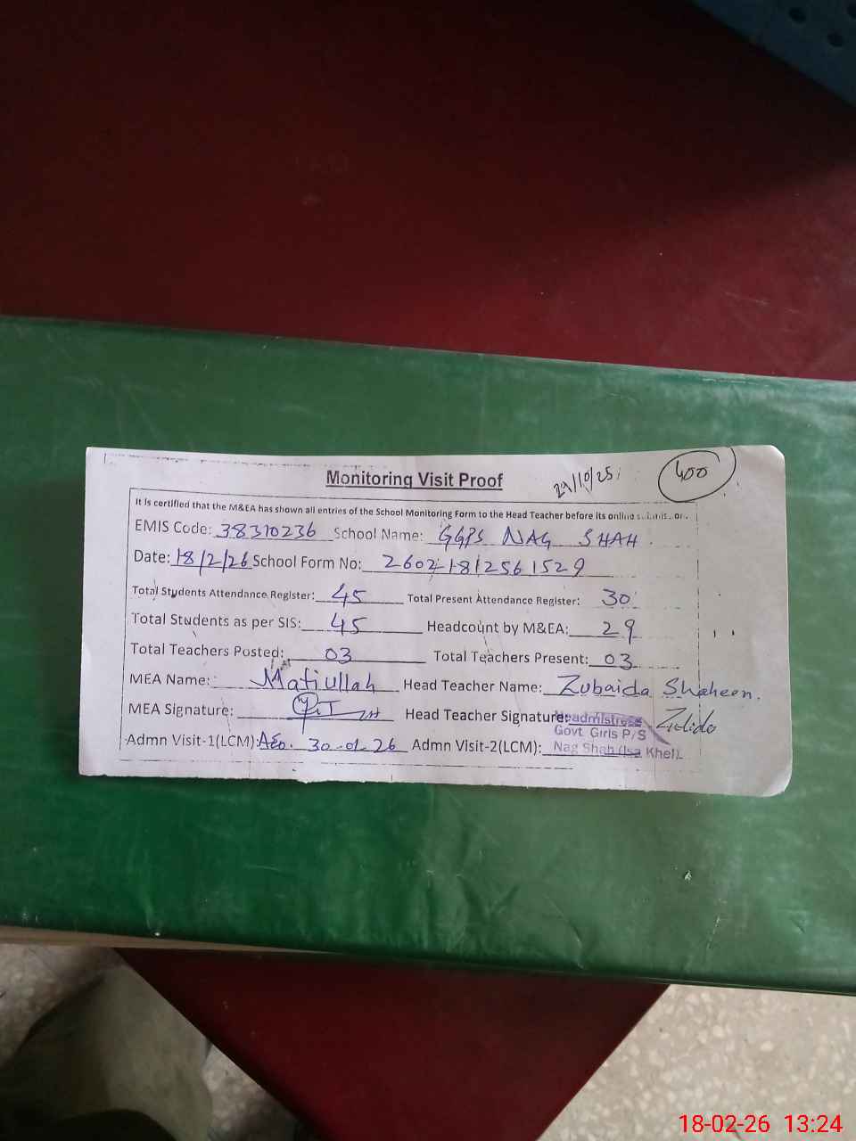 | EMIS Code: 38310236 | Name of School: GGPS NAG SHAH | |||
