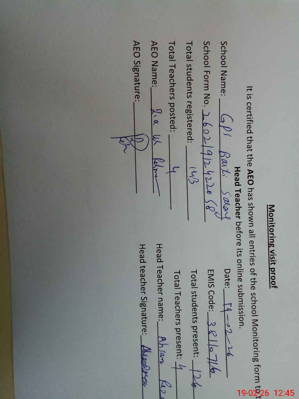 | EMIS Code: 38110716 | Name of School: GPS BASTI SARANG | |||