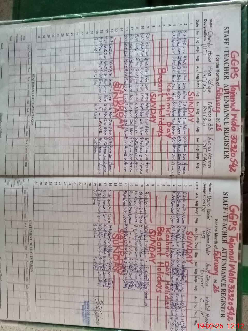 | EMIS Code: 32320542 | Name of School: GGPS TAJAMMUL WALA | |||