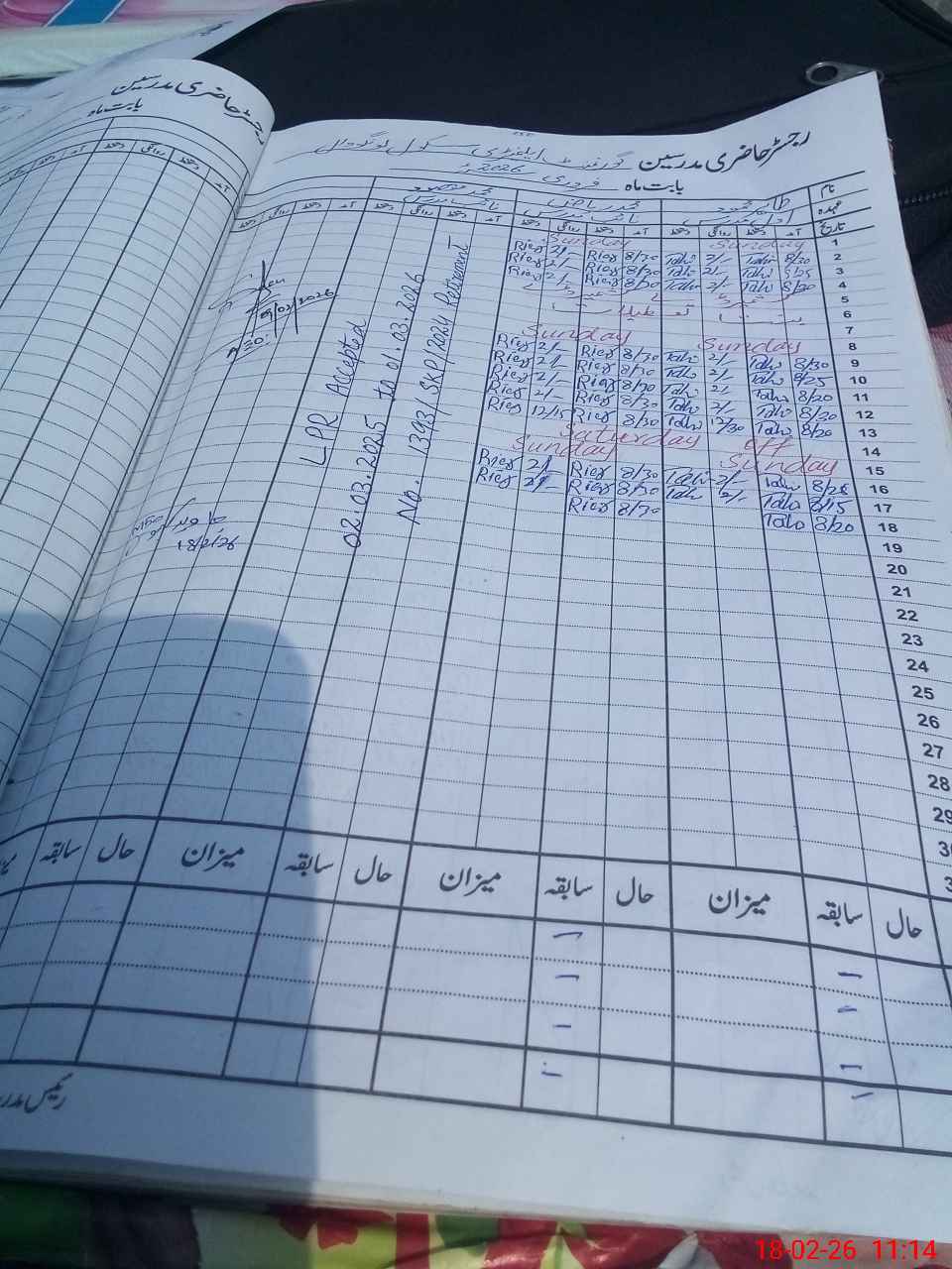 | CNIC | Full Name | Designation | R/C | Absence During Last Calender Month |